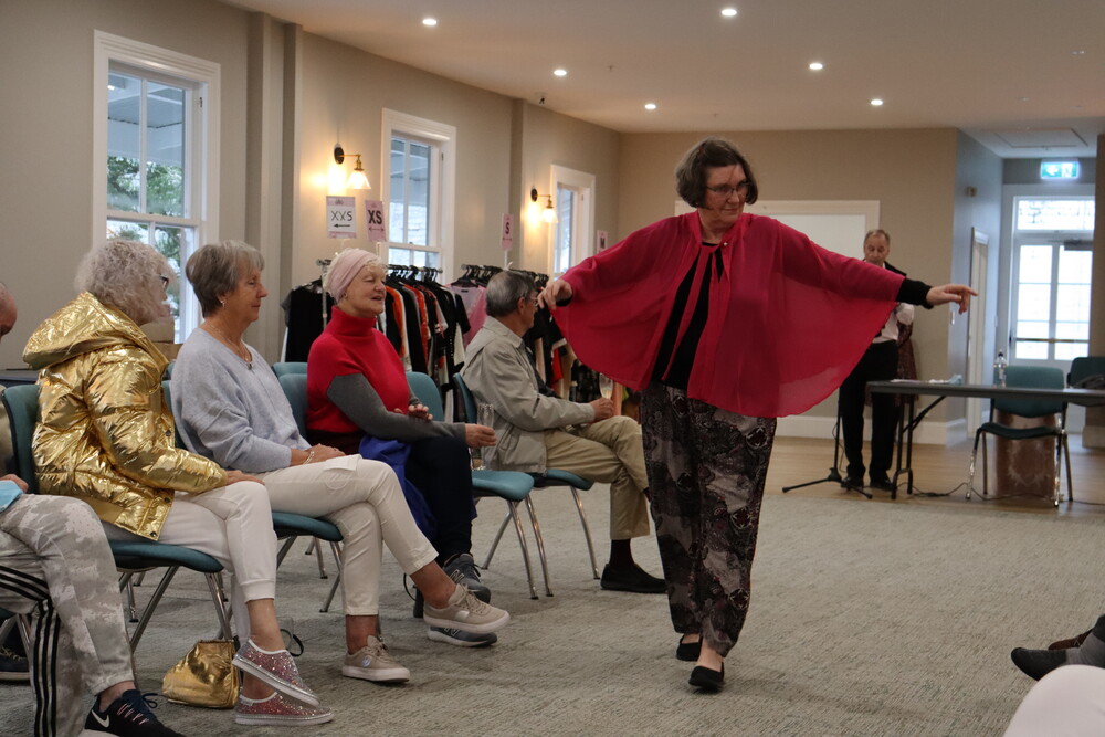 Christine is also involved with the village’s community garden, the UFO (Un-Finished Objects) craft group, patchwork & quilting group, and she also volunteers driving residents to appointments. She’s always been a very active and creative person and had a variety of different jobs: she’s worked in a dairy farm, been a programme assistant for Radio Hauraki, been a travel agent and finally she worked 15 years as Office Administrator for an Optometrist. She’s not scared of big projects and new challenges and that’s why she accepted to participate in Warkworth Oaks Fashion Parade when the village’s Activities Coordinator approached her.