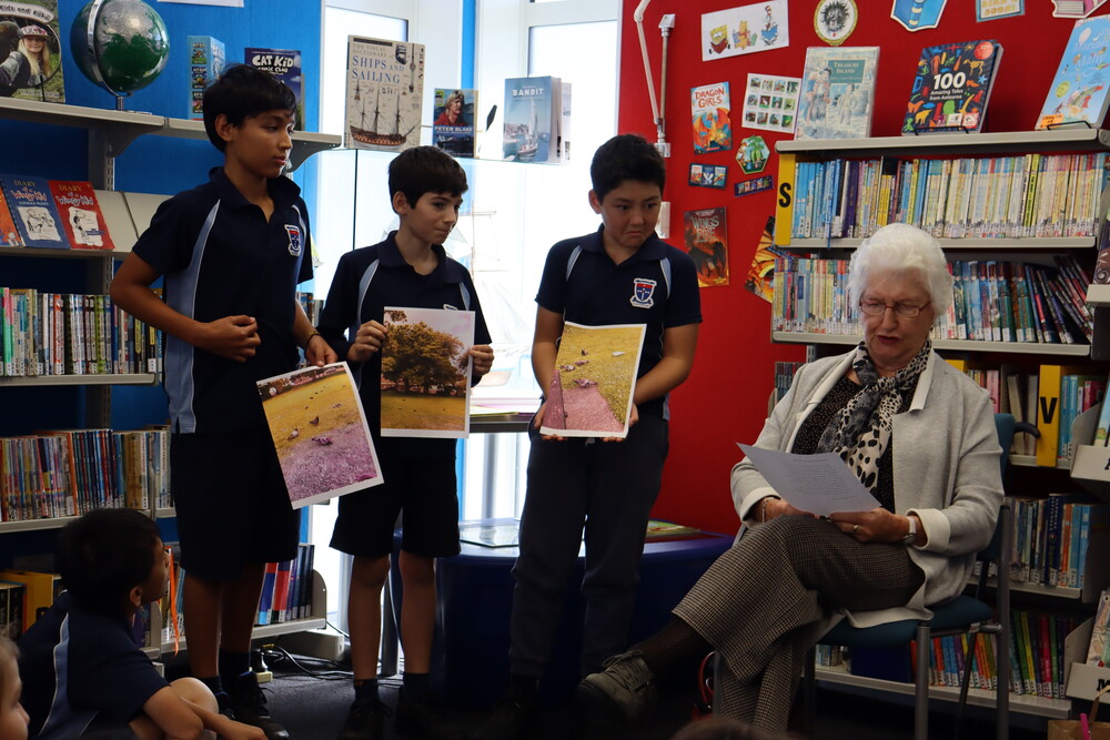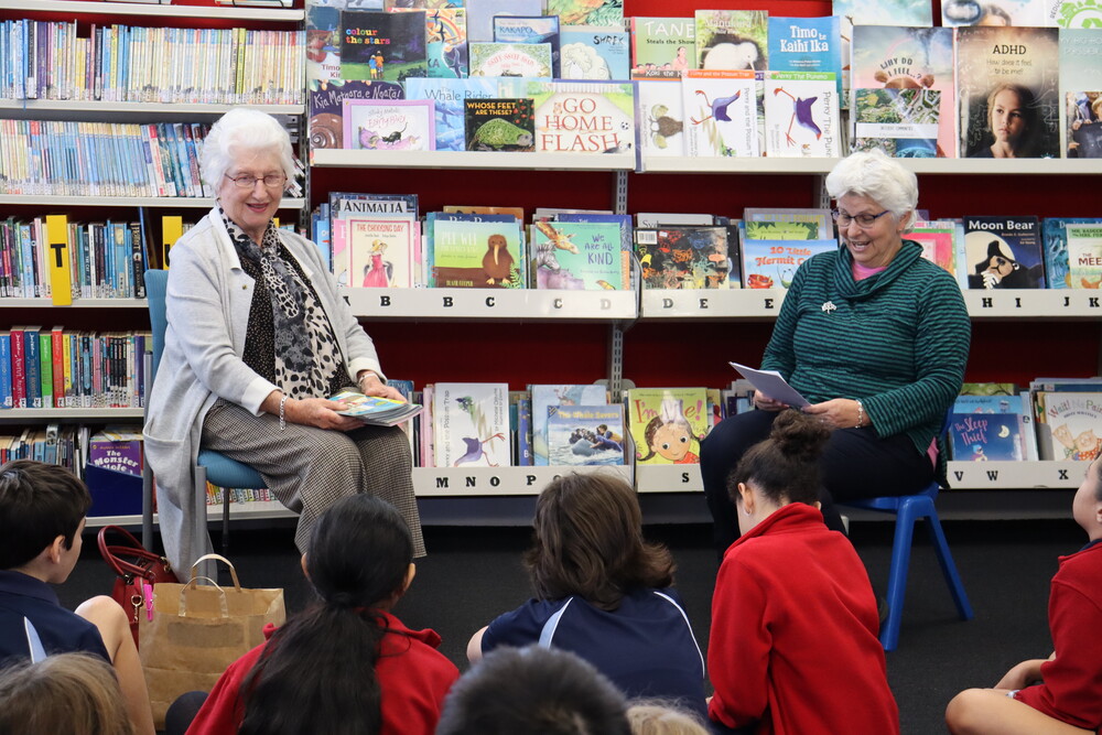 Diana was a teacher for 40 years, so she was totally in her element answering the questions of the children. She also loved the school, which is set up in a rural setting overlooking the Orakei Basin. Diana also talked to the school’s Principal, Sue Bennet, and they both discovered that they like writing poetry in their free time. Diana and Sue shared a couple of their poems with the children.