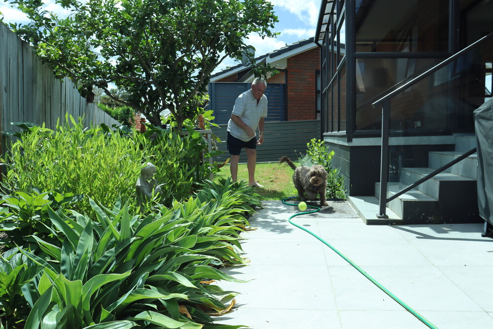Retired horse dentist Vern Trillo moved to Pakuranga Park last year, and one of the biggest factors in his decision was the ability to bring his beloved five-year-old Labradoodle, Bella, with him. Now, he enjoys life in a beautifully designed, open-plan brick-and-tile villa, perfectly positioned to soak up the sun. His home comes with a spacious backyard—ideal for gardening and providing Bella with plenty of room to run and play.