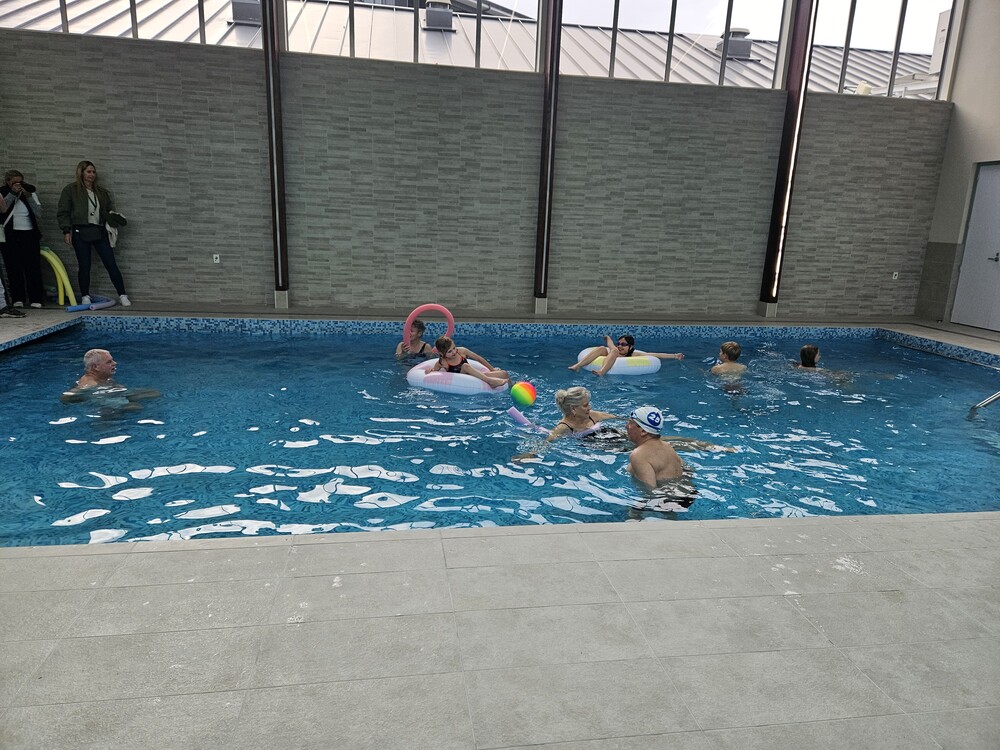 Grandchildren joined in too, delighted to skip school for such a fun opportunity. They enjoyed the games room with cornhole, table tennis, and board games, and their favourite moment came during a poolside shoot in the heated pool, where they played and relaxed with residents.