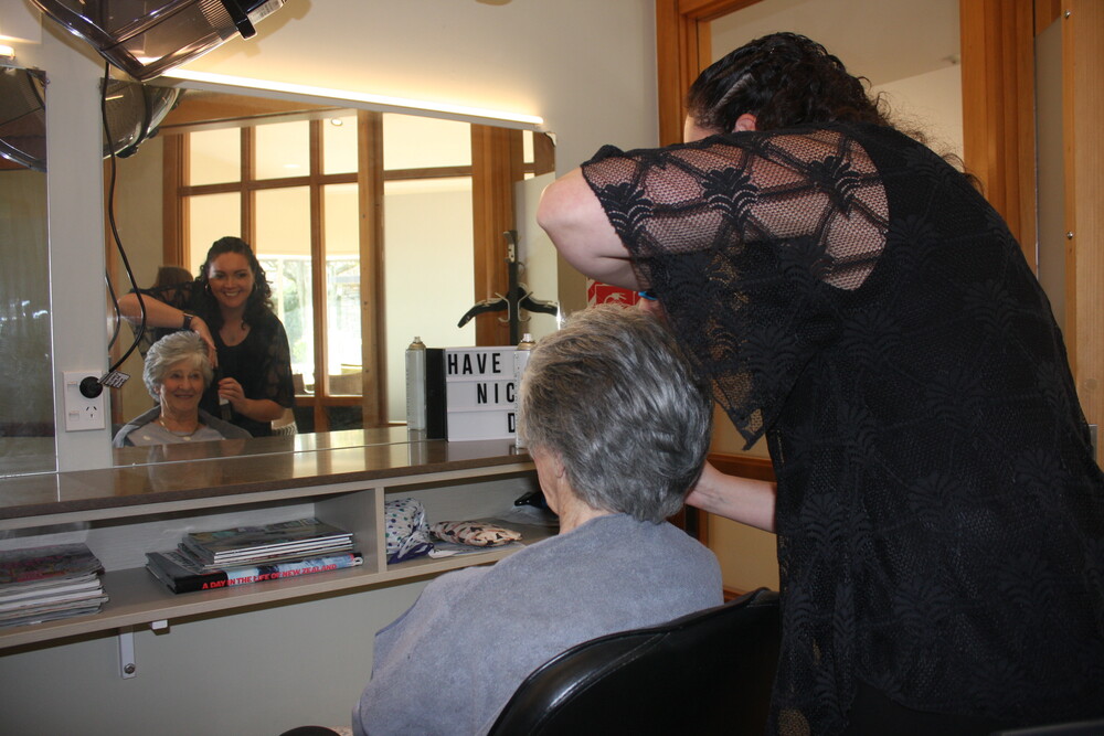 Angela has made lots of friends working at the village. She loves listening to the residents’ life stories and seeing the family pictures they sometimes bring along. She also enjoys her lunch break, when she can step outside the salon and enjoy the tranquillity of Remuera Gardens’ spacious landscaped gardens – with over 150 different kinds of roses!