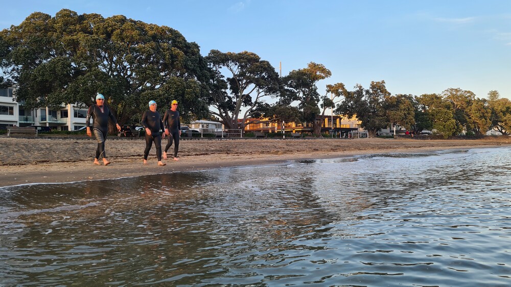 It’s six o’clock on a Wednesday morning and the sun is rising at Kohimarama Beach. Neville and his friends, Bill and Brett, jump into the ocean to start their swim training. They’ve been meeting at the beach three times per week during most of the lockdown and they swim for one hour, rain or shine.