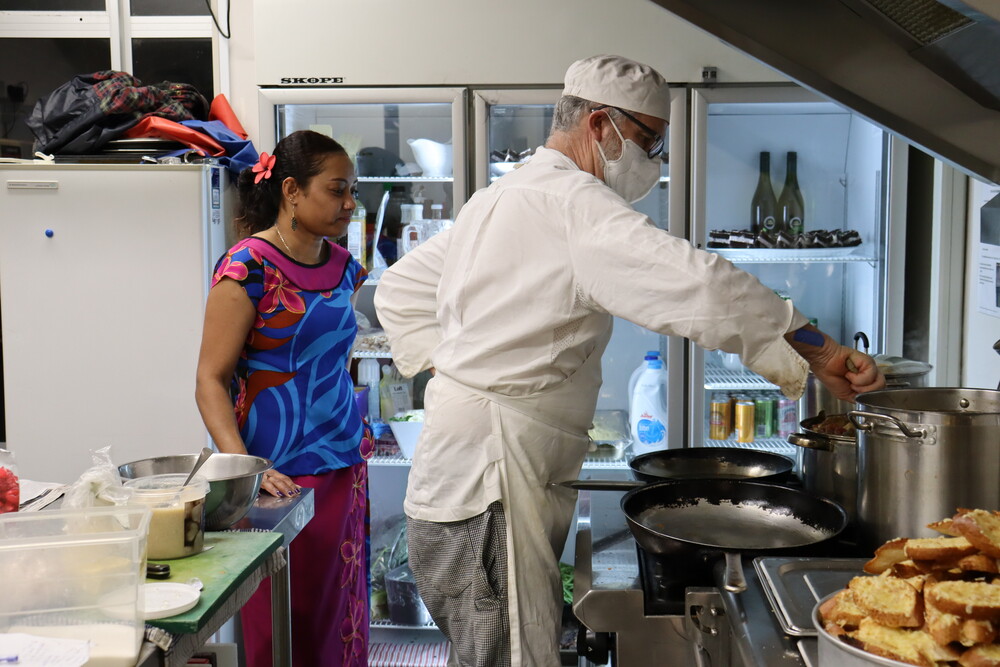 On average Nick feeds around 30-40 people every Wednesday, and a few more when the village hosts special events such as the Christmas party. Feeding lots of people is something he not only does for a living, but also as a passion. Before Covid, Nick hosted two or three big parties every year at his own house, a Christmas dinner, a midwinter dinner and a daylight savings party. He would have between 70 and 80 people at his house, between family, friends and neighbours!