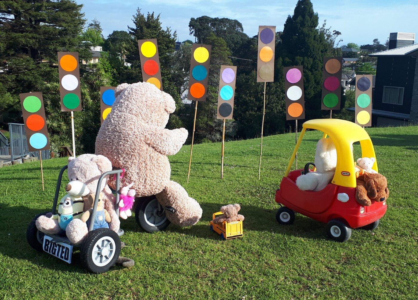 Big Ted has been very busy this week trying to understand the New Zealand’s government new traffic light system. But that didn’t stop him from having a little chat (socially distanced, of course) with Pakuranga Park residents, when they drove past his house on Wednesday.
