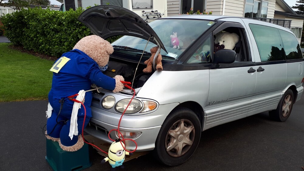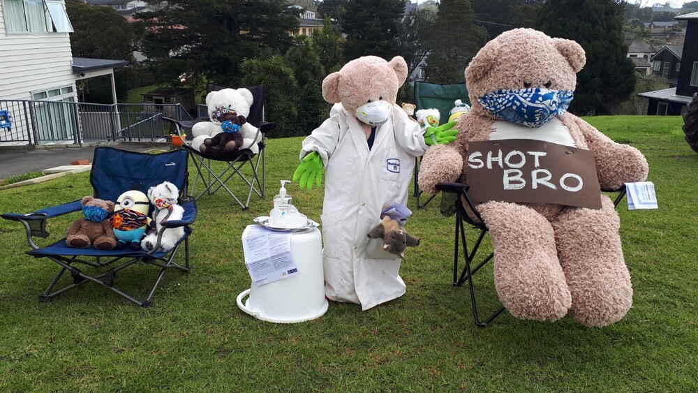 The Howick-based teddy bear has been entertaining locals during the 70 days that Auckland has been in lockdown. He’s a Bear of many talents and he’s been sailing, skiing, playing cricket, knitting and repairing cars.