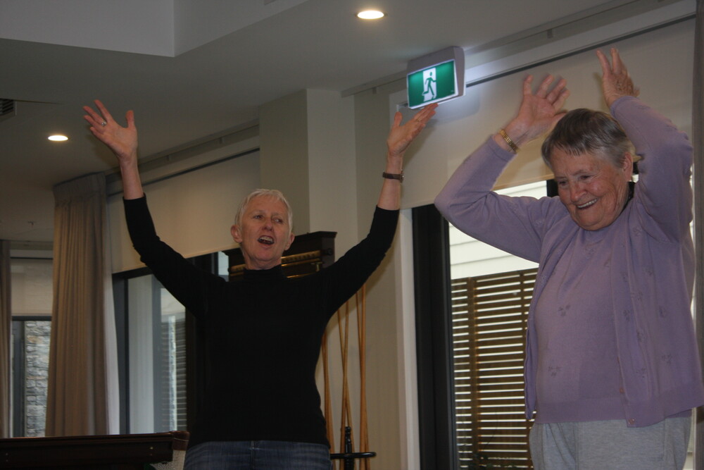 The Village Activities Coordinator, Raewyn Morrison, leads the class with active dance moves and a good sense of humour. Impossible not to feel great after one of her 'boogie' sessions!