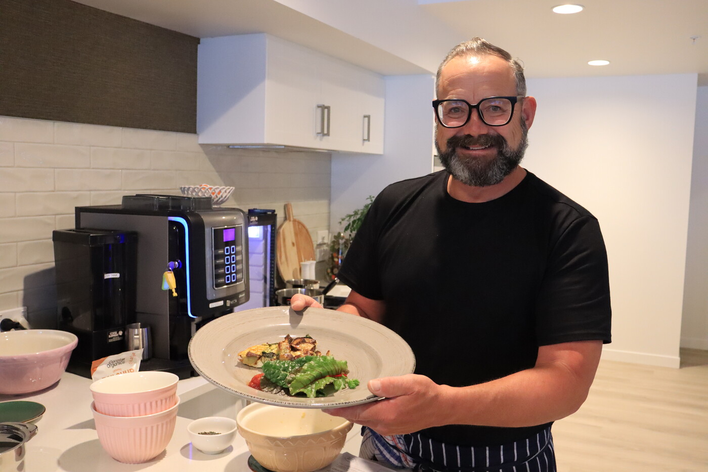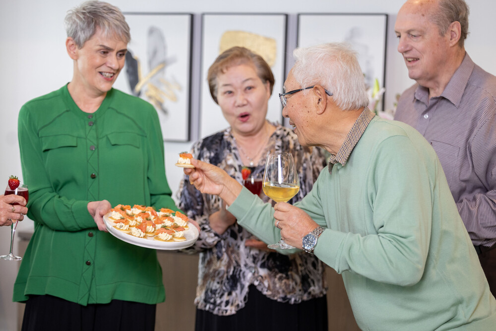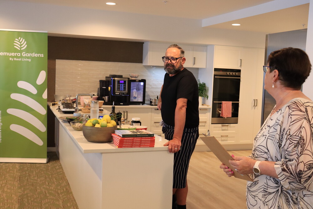 Michael’s passion for food began at just 14, washing dishes in a Henderson restaurant. Captivated by the buzz of the kitchen, he soon worked his way up, later travelling to London and Ireland before returning to New Zealand to open several successful restaurants. In recent years, he’s dedicated himself to sharing his love of wholesome, easy cooking through television, radio, and his own cookery school, Good from Scratch Cookery School in Muriwai. After the cooking demo, there was a Q&A session where residents had the chance to ask Michael questions about his career, cooking philosophy, and life in the kitchen. Resident Mel Chitham asked him about the roots of his culinary journey.