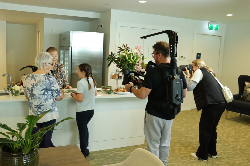 Filming took place not only in the apartments, but also around the village facilities — including the vibrant Pavilion, the bowling green, and the seven acres of landscaped gardens. These settings not only highlighted the lifestyle on offer at Remuera Gardens but also gave residents the chance to socialise between takes, enjoying delicious food prepared by the village kitchen.