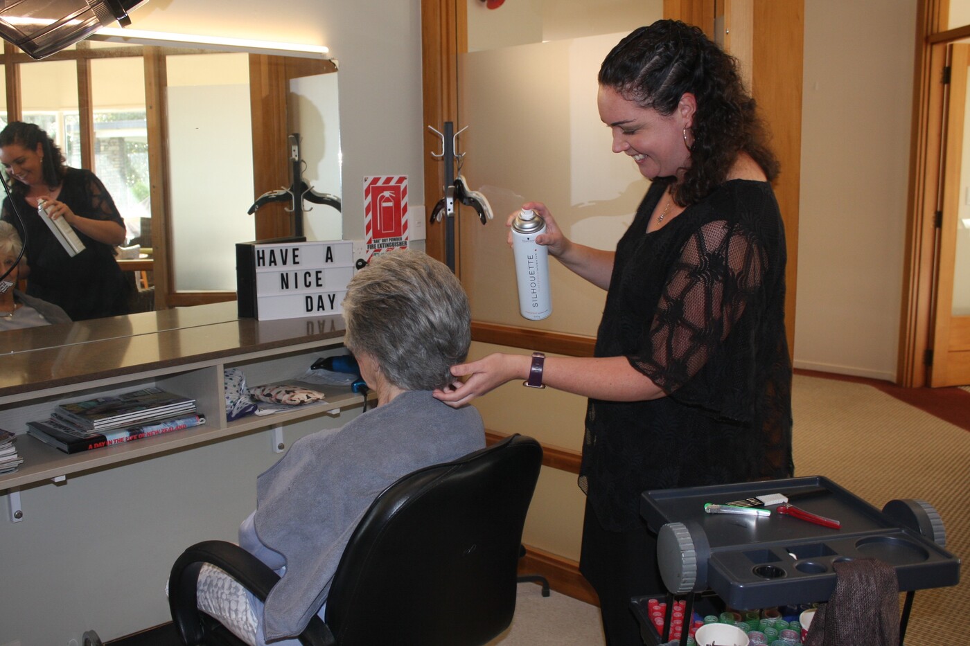 Angela has made lots of friends working at the village. She loves listening to the residents’ life stories and seeing the family pictures they sometimes bring along. She also enjoys her lunch break, when she can step outside the salon and enjoy the tranquillity of Remuera Gardens’ spacious landscaped gardens – with over 150 different kinds of roses!