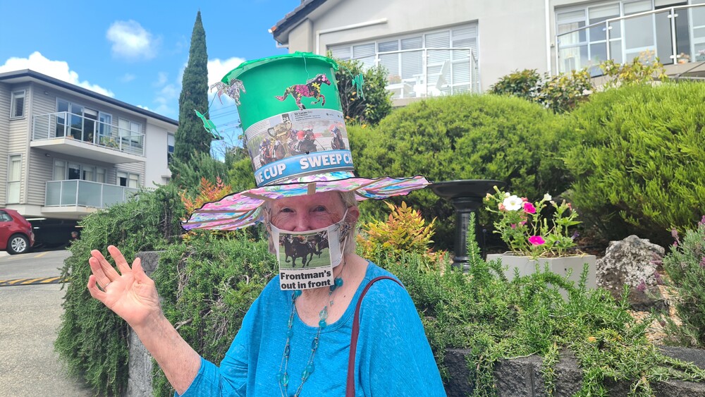 Another Epsom Village resident, Sally, put her extraordinary imagination on display with a Melbourne Cup hat that she had built and decorated with newspaper clippings.