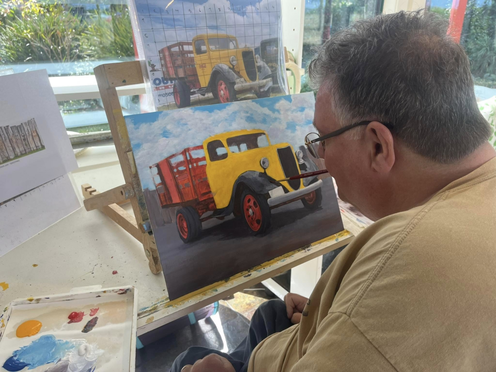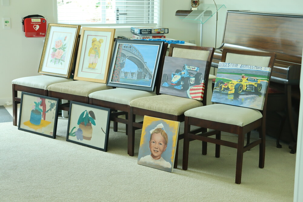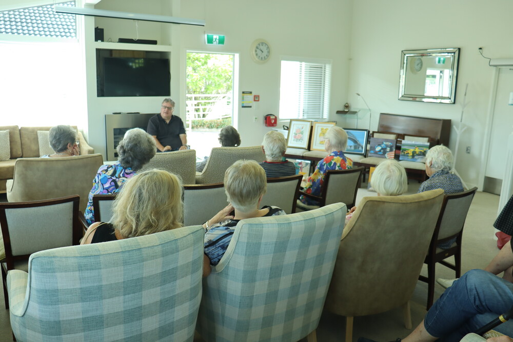 During his talk, Grant shared some of his earliest paintings with the residents of Epsom Village, recalling with humor the frustration he felt when he first started. He then revealed his more recent masterpieces, leaving the audience in awe.